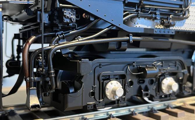 Das Modell bildet das Fahrwerk der mächtigen 4-8-8-4-Konfiguration der Gelenklokomotive in jedem Detail nach. Die Dampfleitungen zu den Zylindern sind flexibel ausgelegt um die Kurvengängigkeit zu erhöhen. Dabei kann das Modell trotz der Länge den kleinen Spur 1 Radius mit 1020 mm durchfahren. Empfohlen wird allerdings ein Mindestradius von 1394 mm um den Anlagenbau nahe der Gleise (Geländer, Masten, Weichenausstattung etc.) nicht zu gefährden.